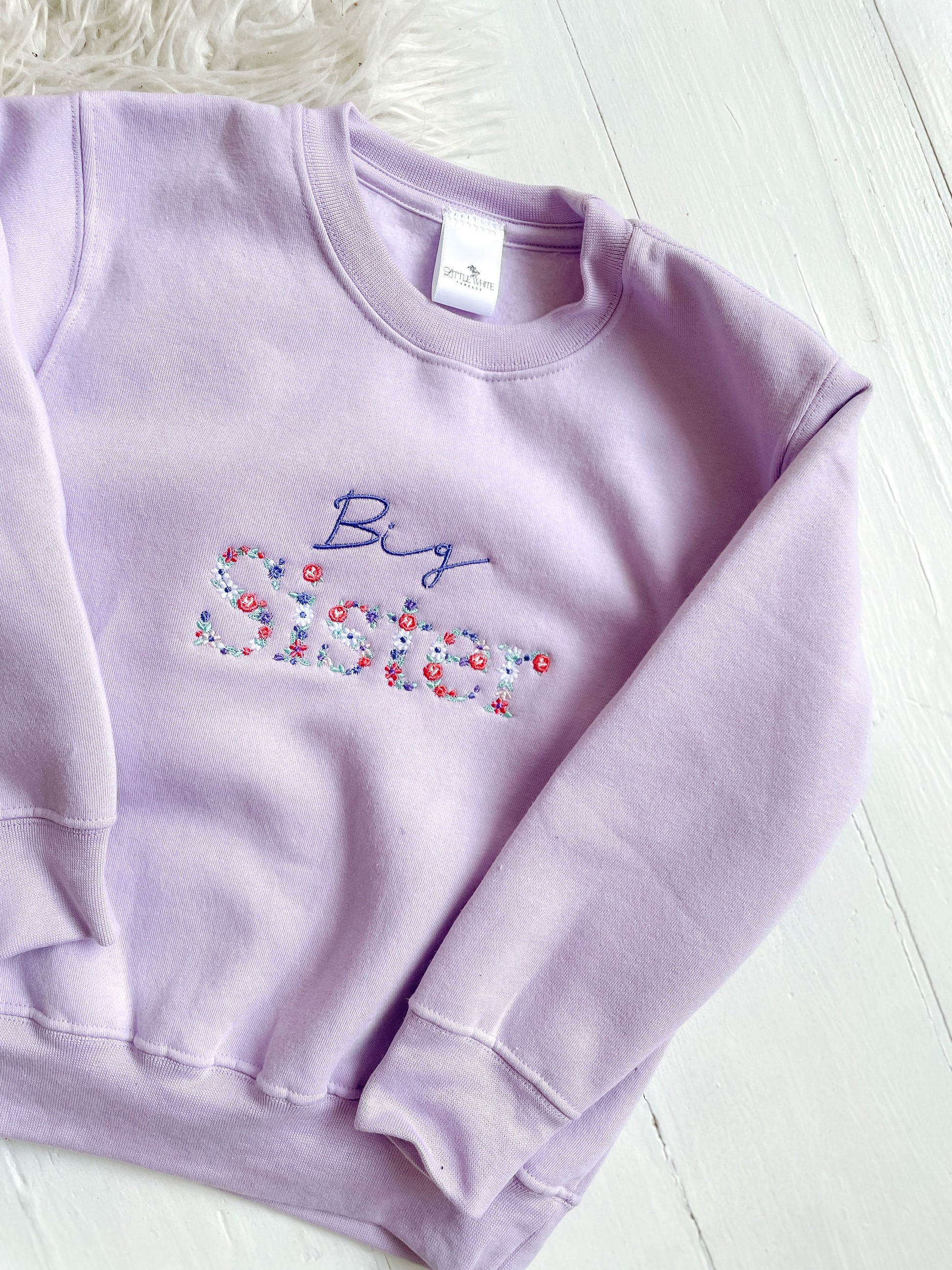 Our jumpers are available in several colour ways & with different text. So perfect for big sister or little sister (see separate listing for brothers & little sister option)