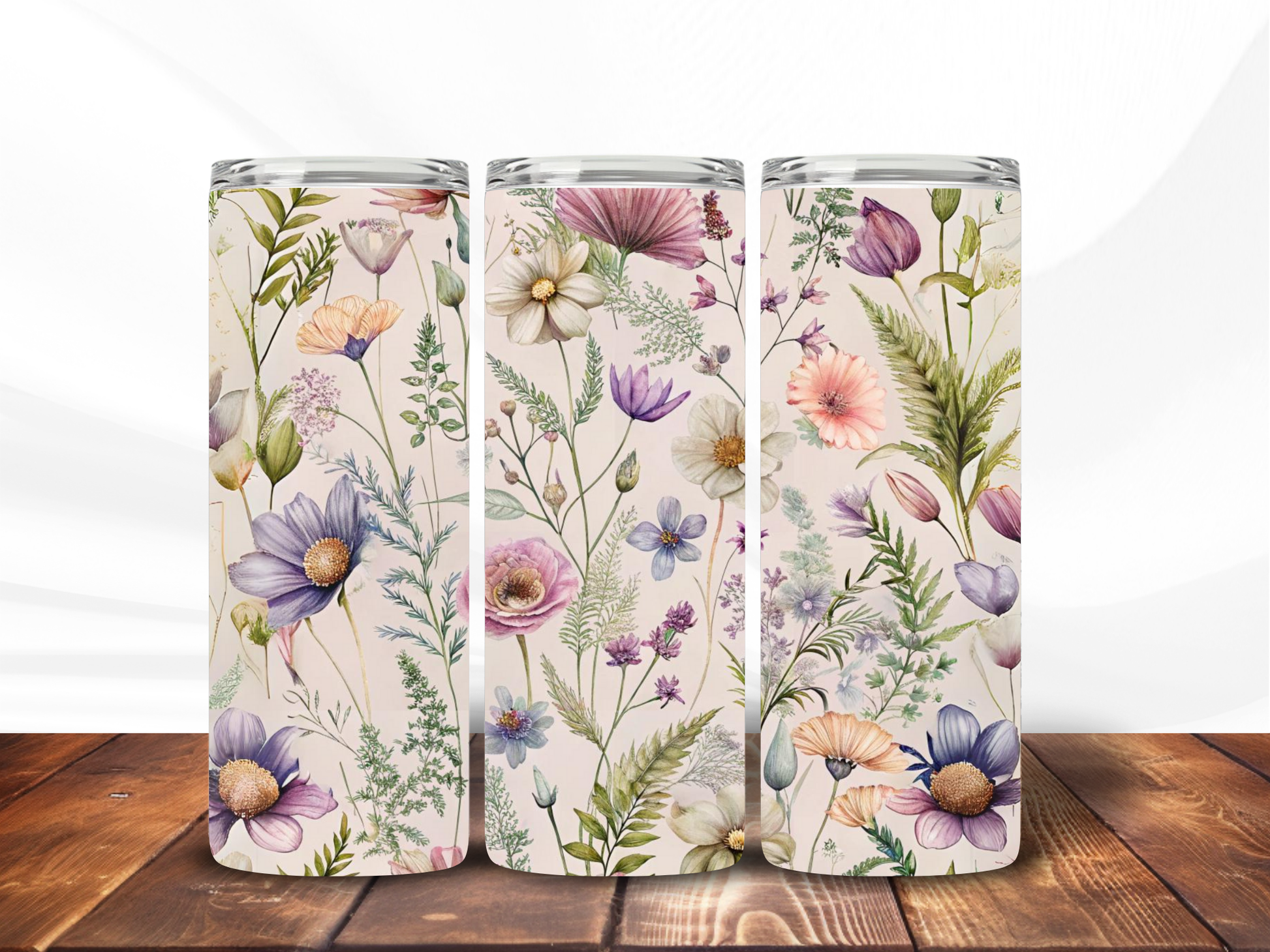Cream wildflower 20oz tumbler | floral coffee travel tumbler | coffee flask | Tea