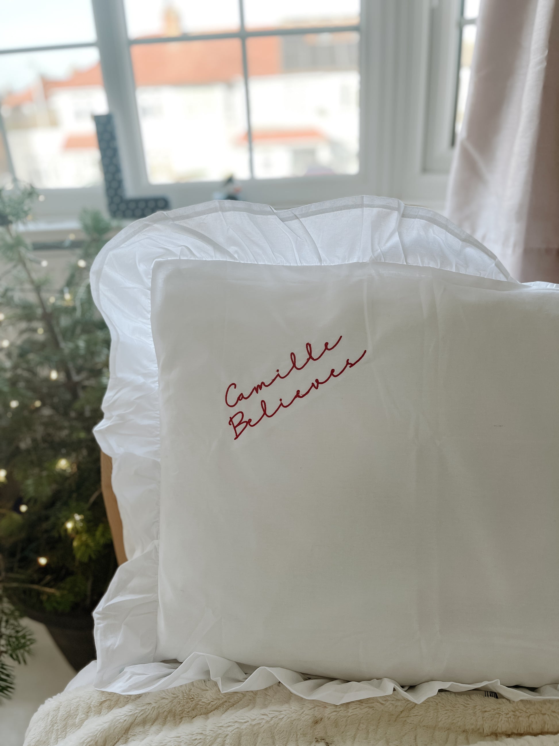 Embroidered personalised Christmas I believe pillow cases