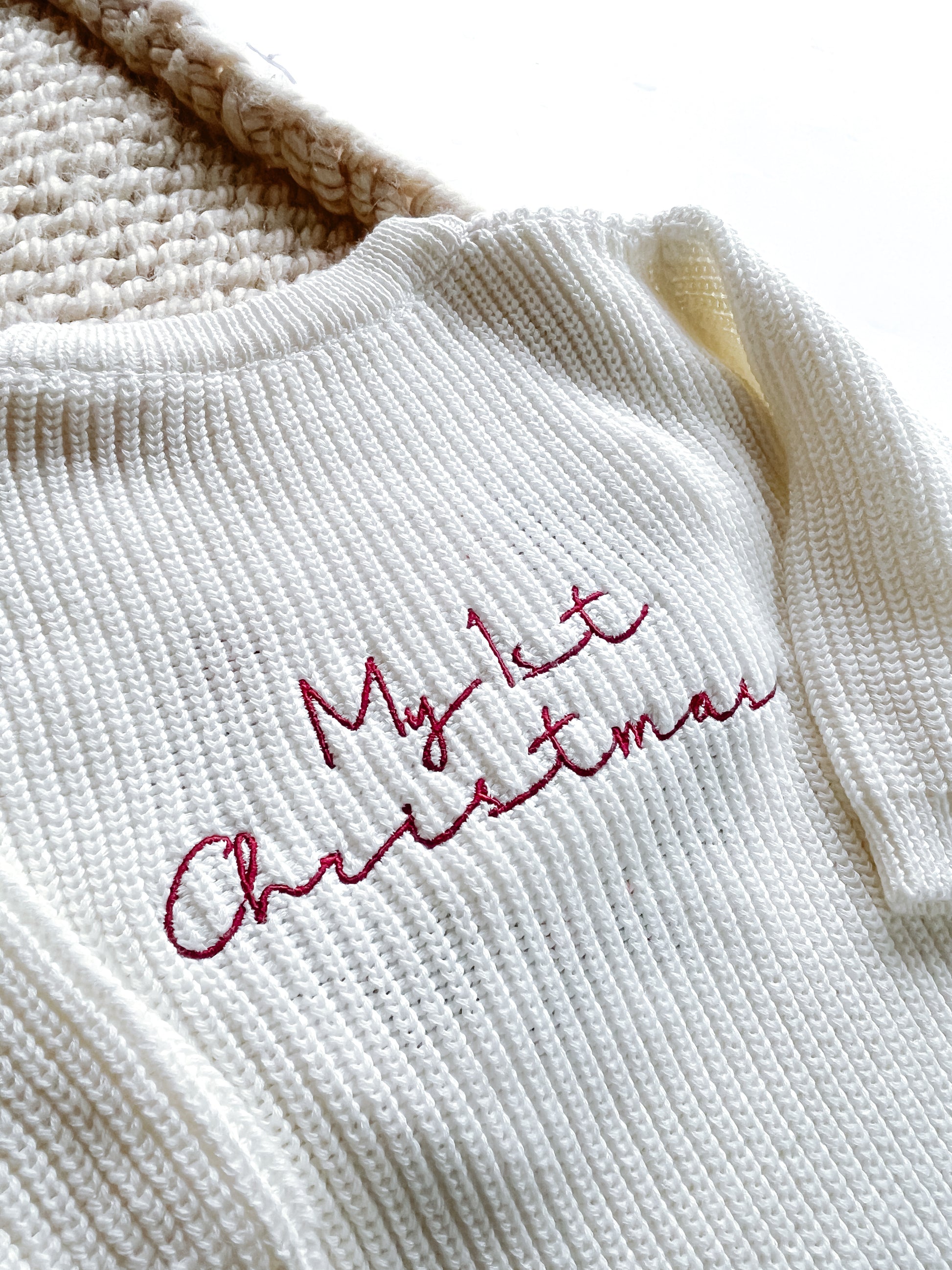 My 1st Christmas knitted Baby Romper – Christmas Embroidered Knitted Outfit