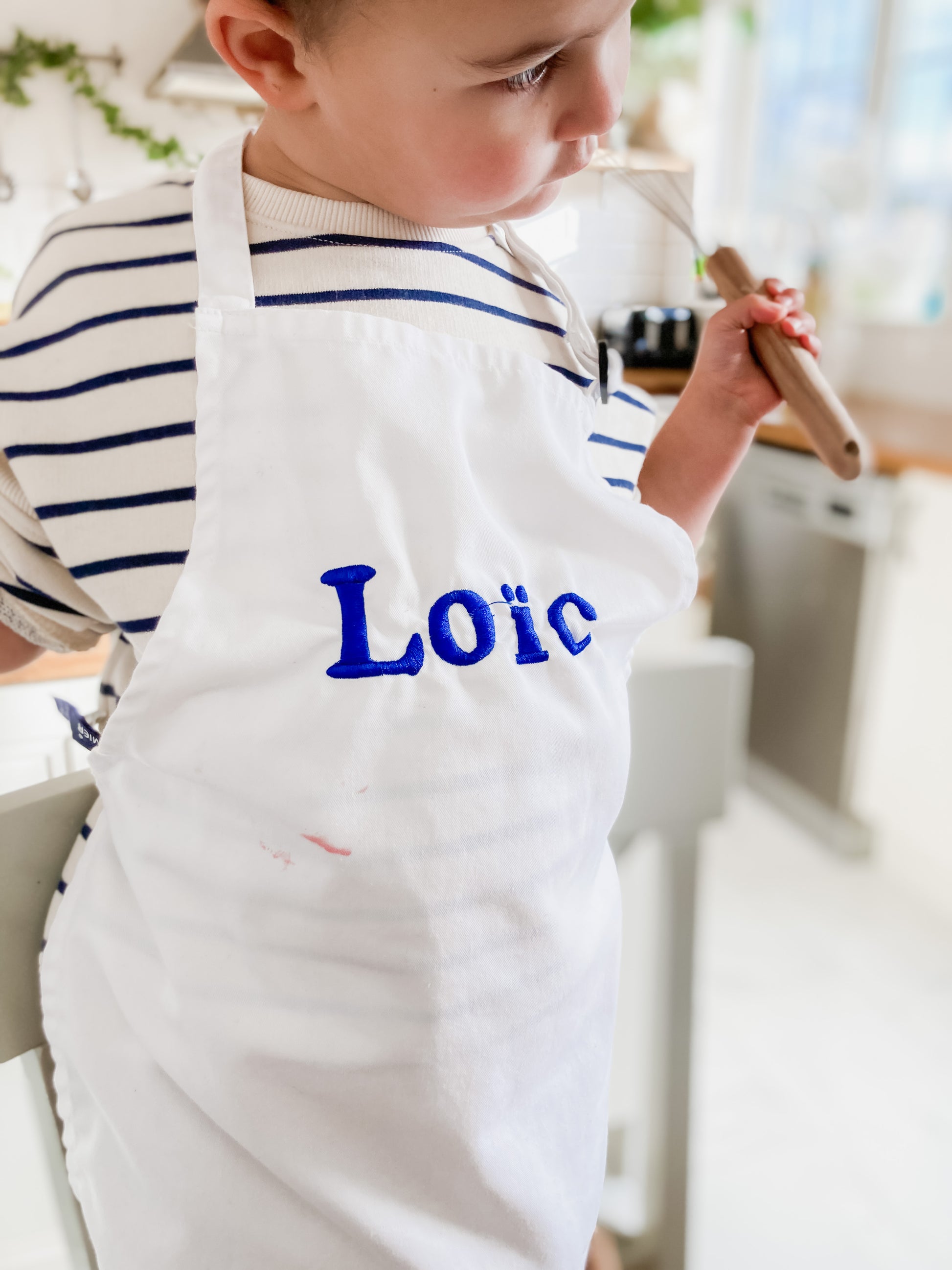 Choose your apron colour & thread colour to make it totally unique to your little one.