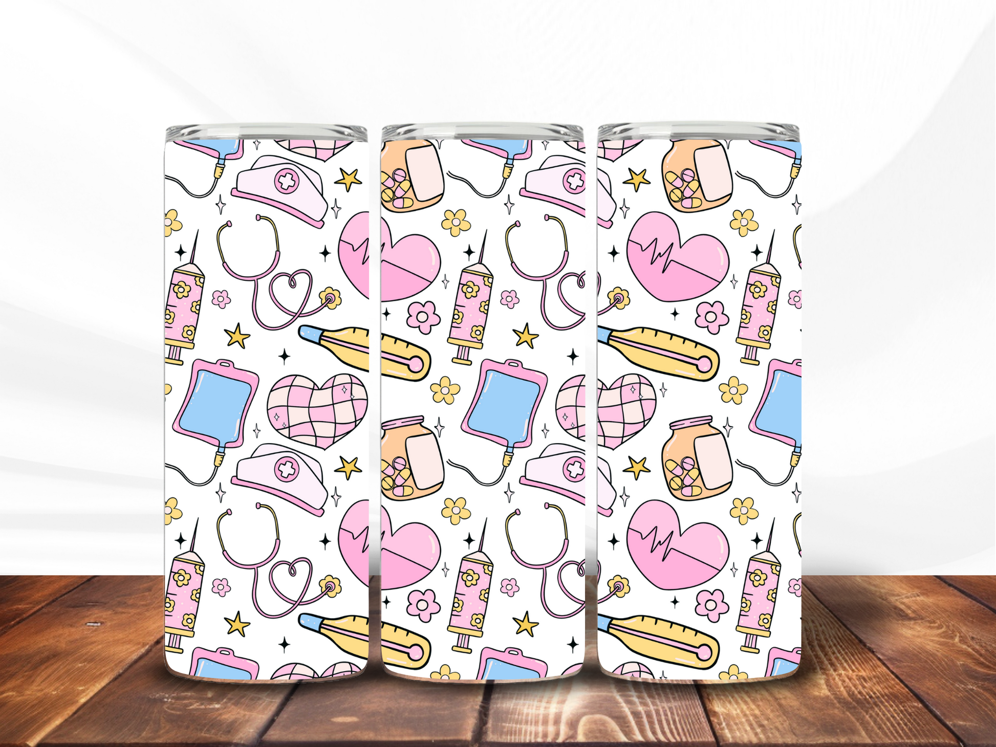 Celebrate the wonderful nurses & the dedication & care they show daily with the cute & fun nurse equipment theme 20oz tumbler.
