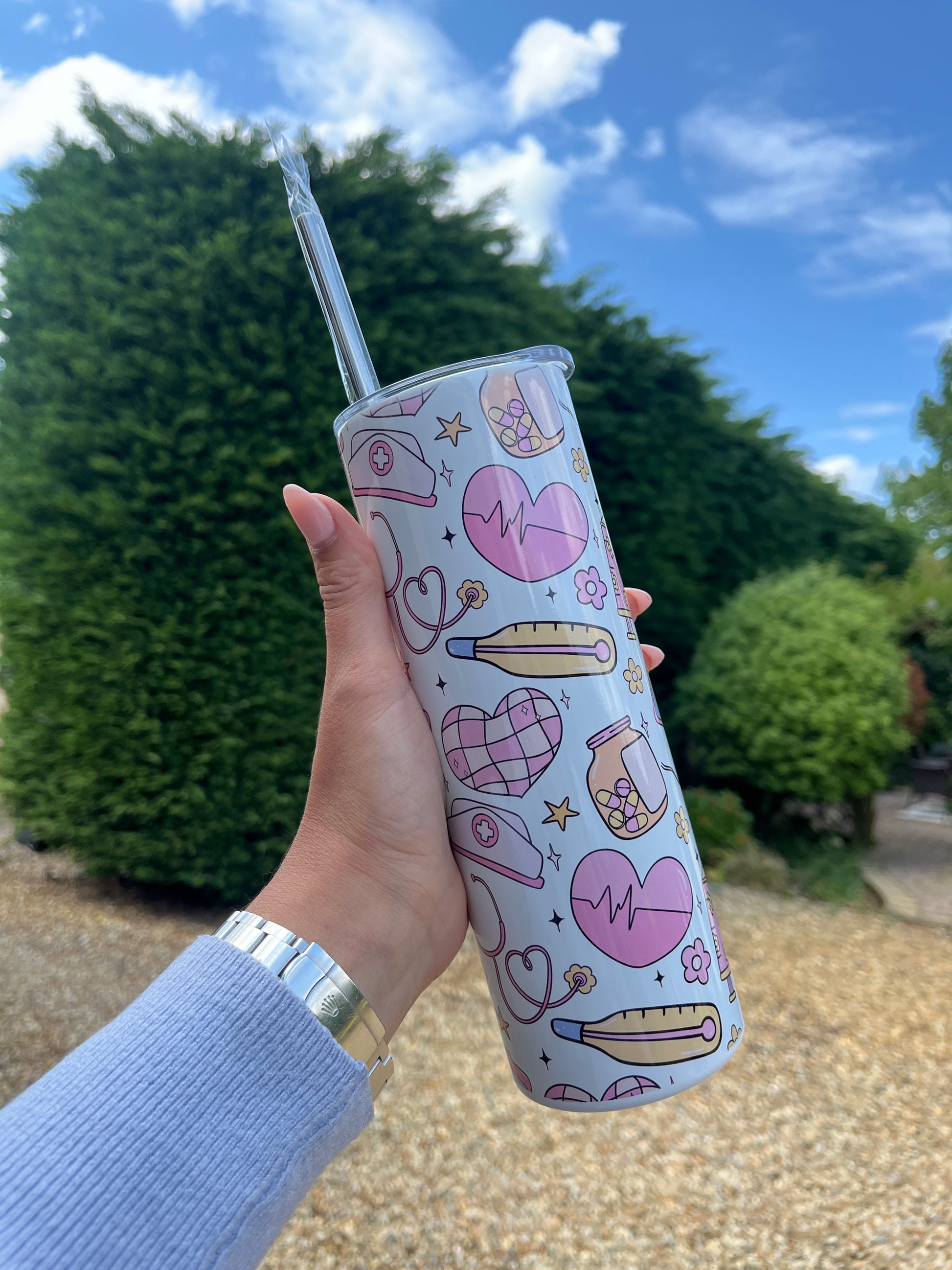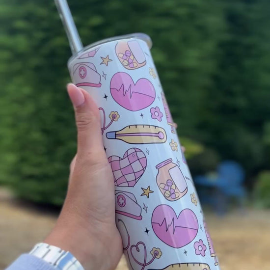 The Nurses tumbler is a stylish way to stay hydrated on the job while honouring the hard working individuals who patch us up & keep going 🩷